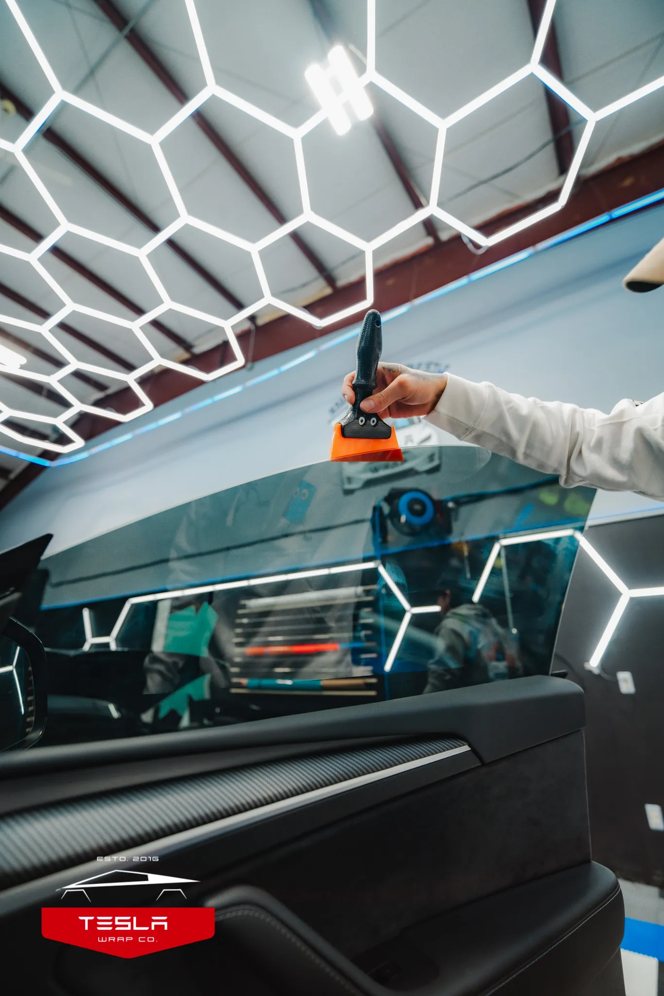 Tesla’s frameless doors and auto-present windows demand surgical precision. We computer-cut every film, soft-edge shrink around compound curves and tuck beneath weather-strips to avoid edge-lift when windows drop on door open. A dust-controlled bay, filtered lighting and three-stage cleaning regimen ensure a contamination-free bond that earns our lifetime warranty. From Model S executive sedans to Model X falcon-wing giants, installs finish in two to three hours—no overnight stay required.